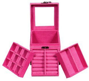 -. Binding : Kitchen -. Brand : KLOUD City -. Color : Pink -. EAN : 0700953653284 -. Feature : Made of medium density fiberboard and covered with soft lint. / Three-layer and removable design provides more space. / Earrings, rings and necklaces can be held. / Keep your jewelry and small things in good order. / Dimensions (L x W x H): 4.9" x 4.9" x 4.9" -. IsAutographed : 0 -. Label : KLOUD City -. Manufacturer : KLOUD City -. MPN : na -. PackageQuantity : 1 -. PartNumber : na -. ProductGroup : Home -. ProductTypeName : HOME -. Publisher : KLOUD City -. Studio : KLOUD City -. Title : KLOUD City® Hot Pink three-layer lint jewelry box organizer display storage case with mirror -. UPC : 700953653284