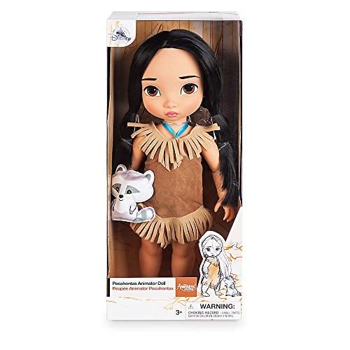 -. Binding : Toy -. Brand : Disney -. Feature : Genuine, Original, Authentic Disney Store / Pocahontas is outfitted in a faux suede dress with fringed trims / Satin ribbon necklace / Includes plush friend Meeko with embroidered features -. Label : Disney -. Manufacturer : Disney -. Model : 460023899553 -. MPN : 460023899553 -. PartNumber : 460023899553 -. ProductGroup : Toy -. ProductTypeName : TOYS_AND_GAMES -. Publisher : Disney -. Studio : Disney -. Title : Disney Animators' Collection Pocahontas Doll - 16 Inch