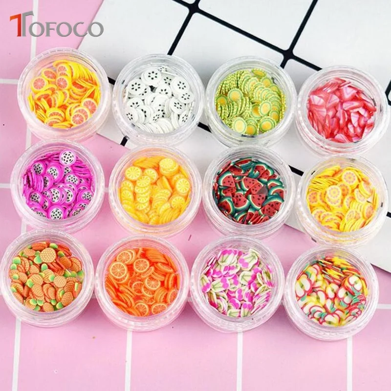 Type:12 kinds of boxed mini fruit slices/Glitter/Sequins