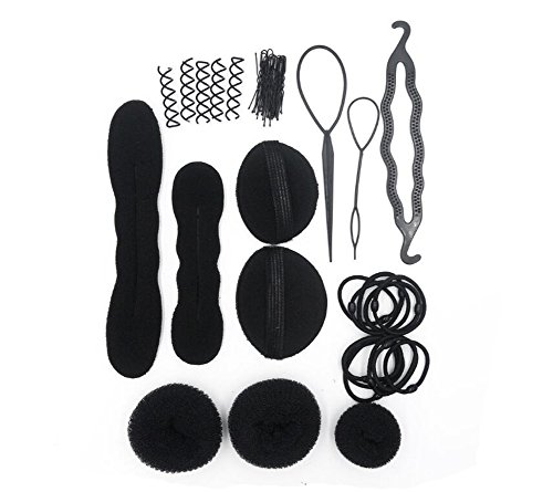1SET Black Fashion Hair Design Styling Tools-Hair Volume Bump it Up Hair Tie Hair Pin Hair Clip Bun Maker Pull Hair Needle Donut Braiding Tool Kit