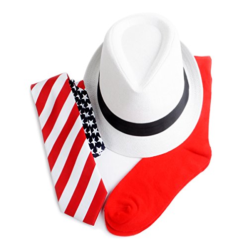 Binding : Apparel Product Description Whether your showing your pride for the United States this 4th of July or representing your service defending this great nation, you'll look stylish and strong in one of these United States fedora hats. This combo include a necktie and a pair of socks. 0