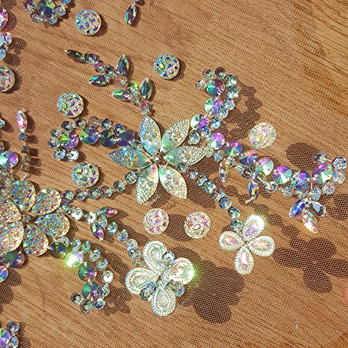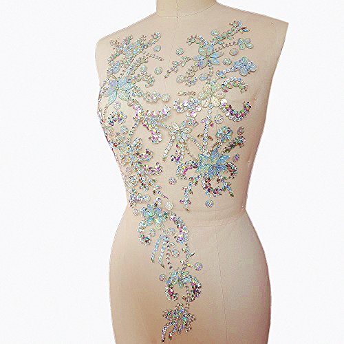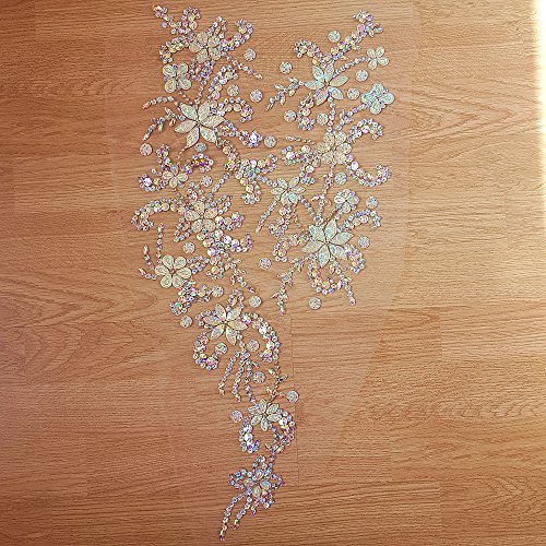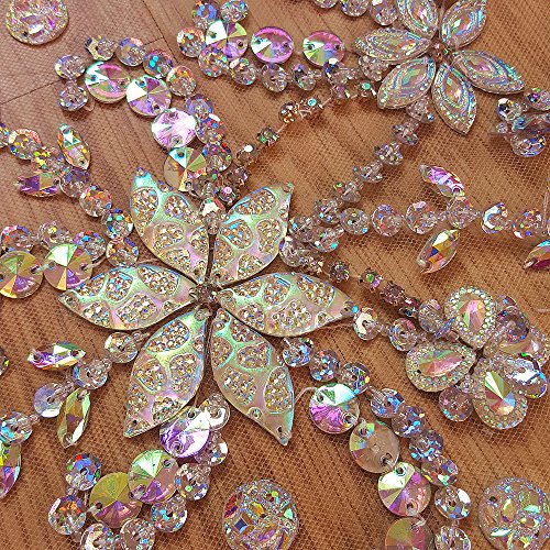 Noble Pure Handmade Beaded Crystal AB Color patches Sew on Rhinestones with Stones Sequins Beads Applique Designs Patches Sewing for DIY Wedding Dress Trim 30x60cm (AB)