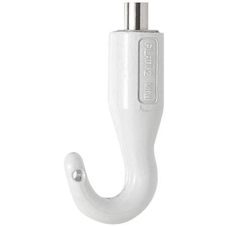 展示物等を直接支えるフックになります。シンプルかつ目立ちすぎないデザインで、ロングセラー商品です。フックにはφ6mmまでの紐やロッドを掛けることができます。φ1.0~1.2mmのワイヤーを通して、ピクチャーレールやアタッチメント等とあわせて使用することで、商品棚やサイン・中軽量物のディスプレイができます。 |