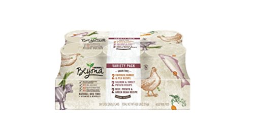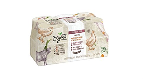 -. Feature : Six (6) 13oz Cans of Purina Beyond, Grain Free, Entree Variety Pack / Natural wet dog food, plus vitamins & minerals / Grain free and gluten free / Beef, Chicken or Salmon is the #1 ingredient / No corn, wheat or soy No poultry by-product meal. No added artificial colors, flavors or preservatives. All the nourishment they need. Nothing they don't