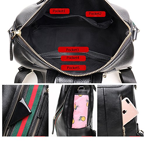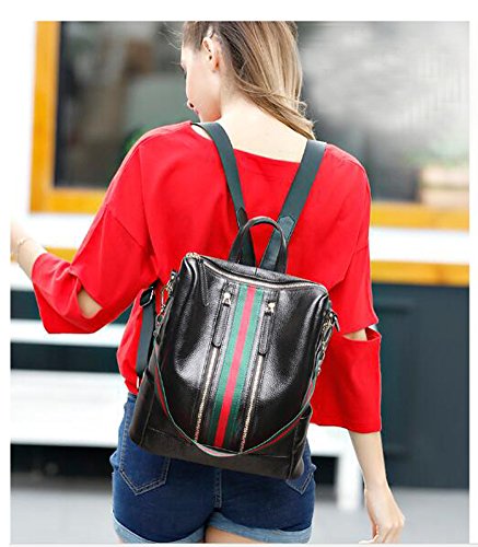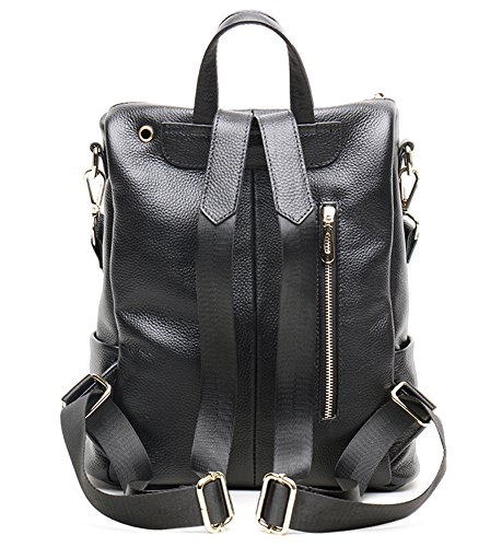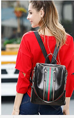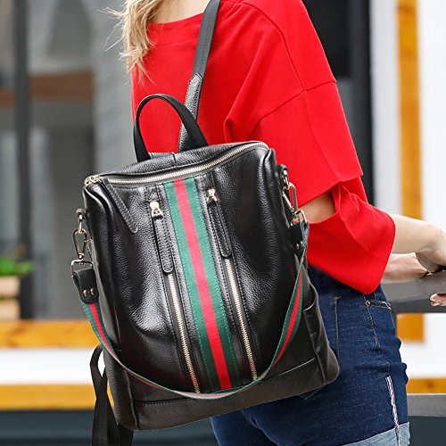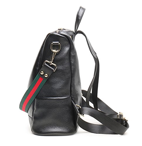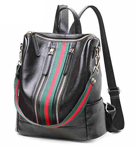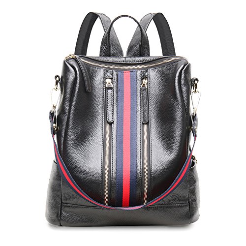 -. Brand : Fiswiss -. Color : Black With Blue Stripe -. Department : womens -. Feature : Full grain cow leather. Fabric lining / Five pockets in the interior, two are zippered / Adjustable double shoulder straps / 12.8'' (L) X 4.7'' (W) X 11'' (H) / Since leather material is very soft, some wrinkles may on the surface of the handbag, that is not quality problem. -. ProductGroup : Shoes -. ProductTypeName : HANDBAG -. Size : Medium -. Title : Fiswiss Women's Genuine Leather Casual Backpack Everyday Backpack Purses And Handbags