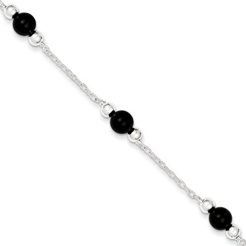 -. Title : IceCarats® Designer Jewelry Sterling Silver 9Inch Polished Onyx Anklet In 9 Inch