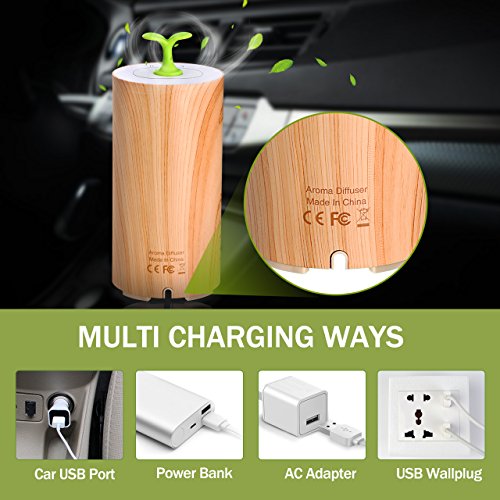 - Rechargeable USB Port: This USB aroma diffuser can be charged through a USB cable, conveniently getting power from car USB port, power bank, AC adapter, USB wall plug etc. It’s convenient to take it with you.