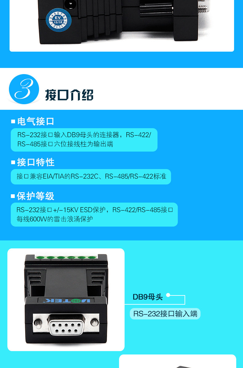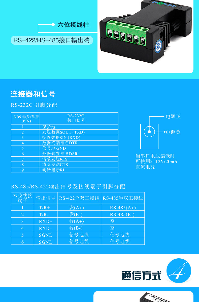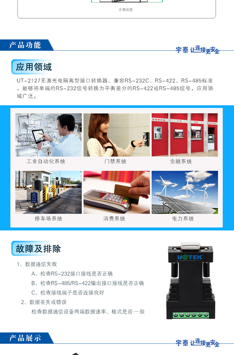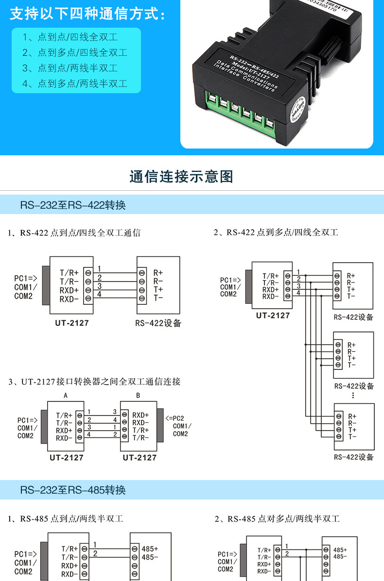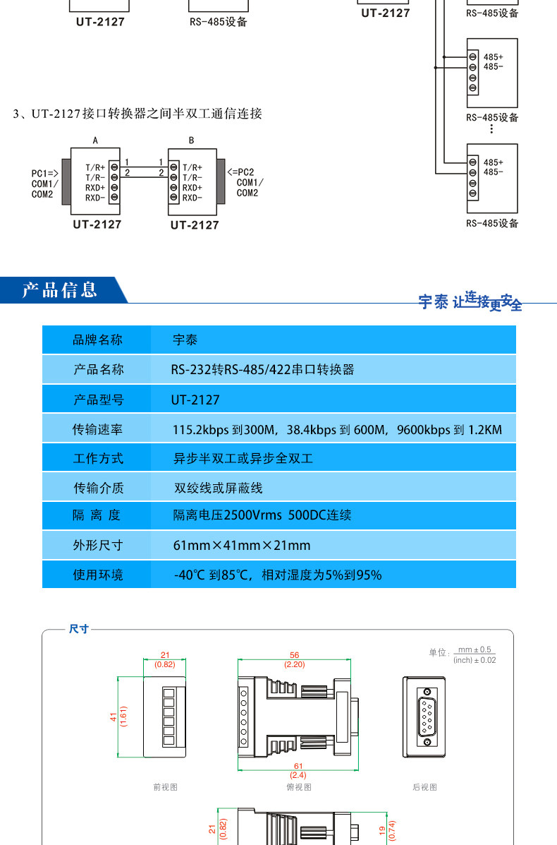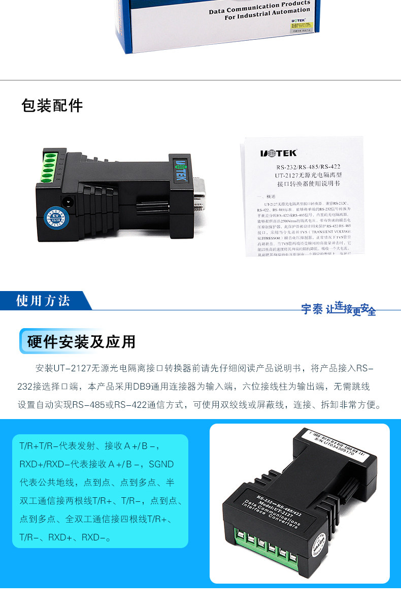 宇泰UT-2127 无源RS232到RS485/422光电隔离转换器、工业级转换器