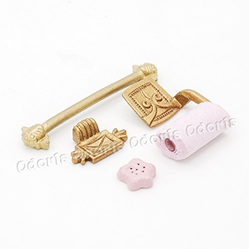 -. Feature : Scale: 1:12 Dollhouse Miniature Decor / Including: 1x Towel Bar, 1x Toilet Paper Holder, 1x Soap Dish & Soap (Not Including Other Items) / Approx. Size (LxWxH): Towel Bar 4.8x0.5x1 cm - 1.9x0.2x0.4 inch / High Details and Workmanship: For Dollhouse Decor of Bedroom, Bath Room, Dresser Table etc.