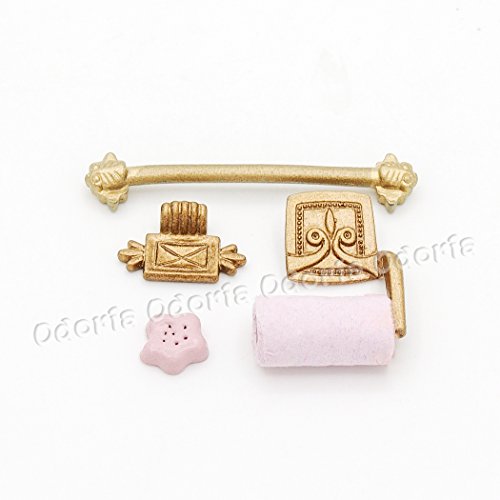 -. Title : Odoria 1:12 Miniature 4PCS Dollhouse Bathroom Accessories Soap Dish Towel Bar Toilet Paper Holder