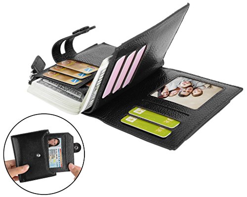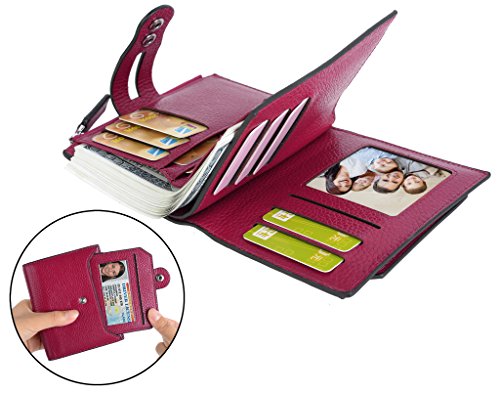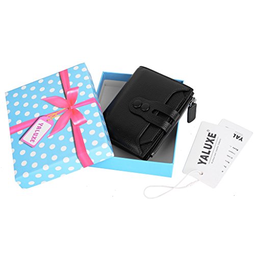 -. Binding : Apparel -. Brand : YALUXE -. Department : womens -. Feature : HIGH QUALITY --- Made from Cowhide Real Leather; smooth silver-tone zipper; sturdy streamlined stitching. Designed to fit into your small crossbody purse. / LARGE CAPACITY --- 16 card slots including 3 photo slots; 1 coin pocket; 1 bill section. It stays closed when stuffed. / EASY ACCESS --- Clear layout and bifold design is designed for easy access to cash and credit cards you need. / GIFT BOXED --- Come in a cute Gift Box and ready to be gift for someone who likes small wallets. / DIMENSIONS: 3.85" L x 4.92"H x 0.86" W. This is a cute yet functional little wallet. -. Model : 11002193-1 -. ProductGroup : Apparel -. ProductTypeName : ACCESSORY -. Size : Small -. Title : YALUXE Women's RFID Blocking Small Compact Leather Wallet Ladies Mini Purse with ID Window