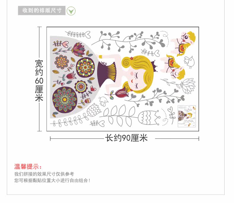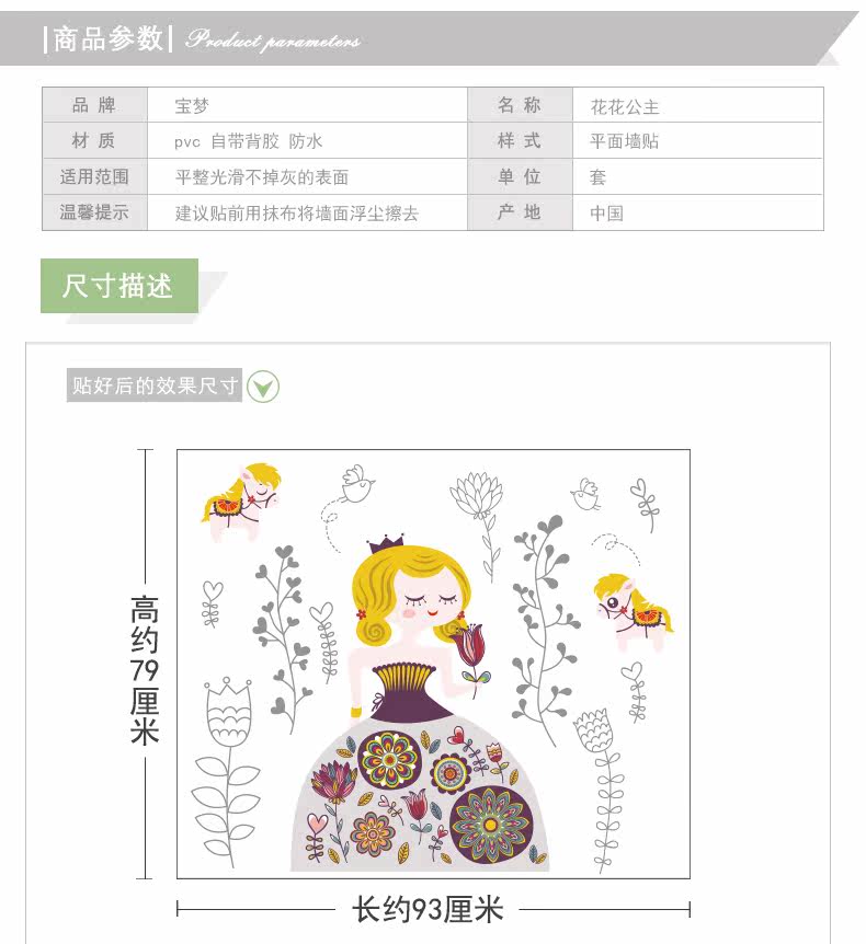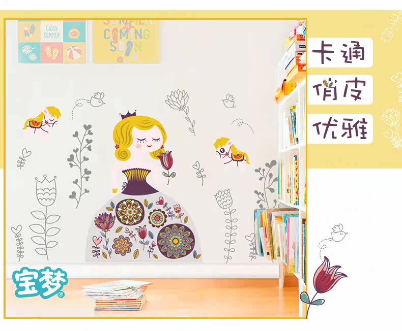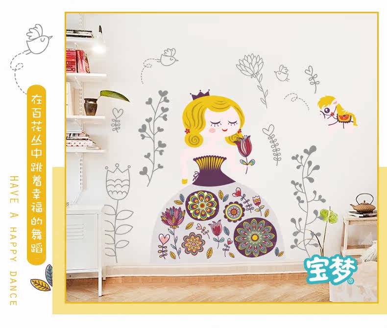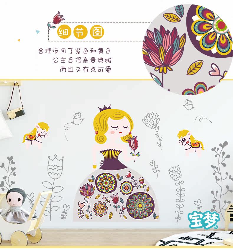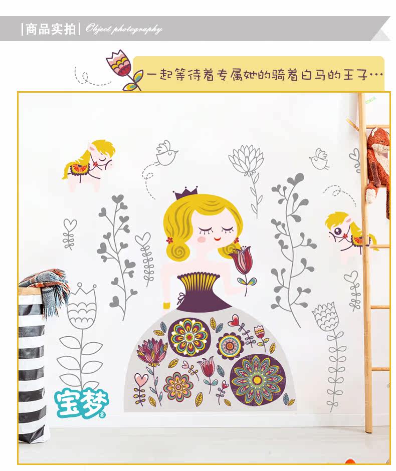 可爱梦幻公主房走廊温馨装饰品墙贴纸卡通儿童房卧室床头自粘贴画