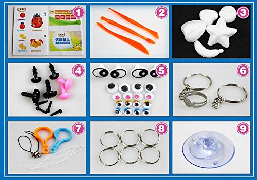 ✓PACKAGE LISTING-24×Magic Clay,3×Tools,5×Polyfoam Balls,10×Noses,20×Eyes,3×Keychains,8×Fishbones+Keychains,6×Rings,2×Suckers.