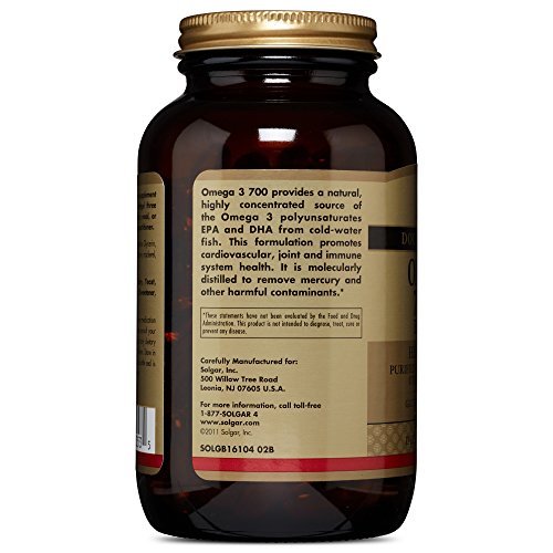 Omega 3 700 provides a natural, highly concentrated source of the omega 3 polyunsaturates pea and DHAl from cold-water fish. Promotes cardiovascular, joint and immune system health. Molecularly distilled to remove mercury and other harmful contaminants. Gluten, wheat and dairy free.
