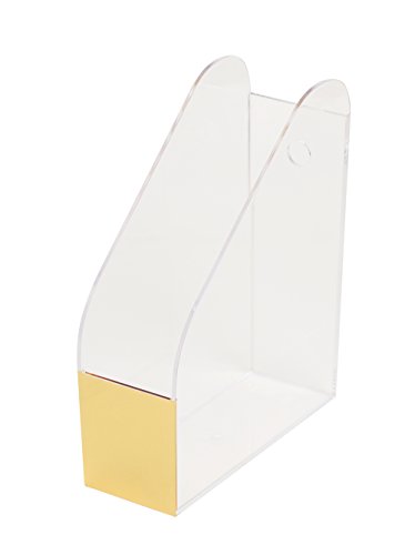 - Stunning, clear magazine holder with a Gold Accent is a must have for any workspace or decor