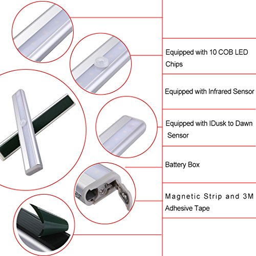 - Powered by 4×AAA Battery(Not Included), the nightlight built 10 COB LED chips, apply the energy-efficient technology, it will used for a long time after you replace the new battery. Great for the closet, kitchen cabinets, stairs, hallway, washroom, refrigerator, or garage space, drawer, storage room ,etc.
