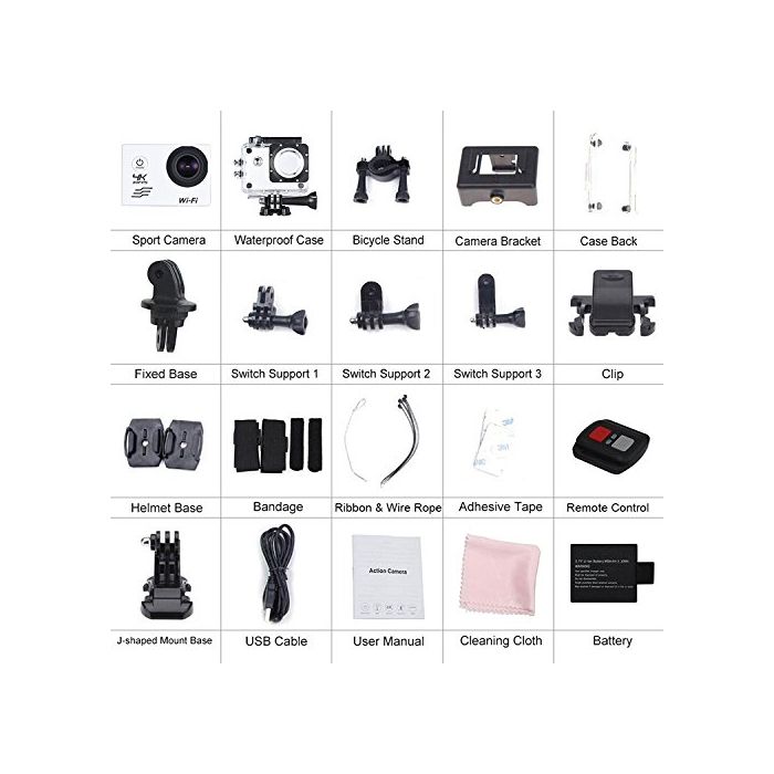 원본상품명: [Origin] バイク 自車 ラジコン に適用 リモコン付き アクションカメラ WIFI スポツカメラ 170度角 4Kビデオカメラ 30M防水 ホワイト SJ8K4WH