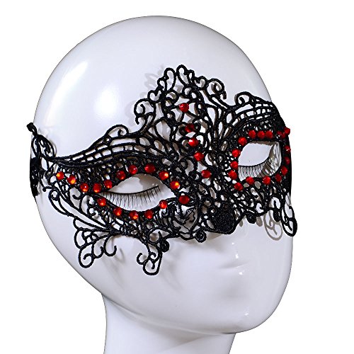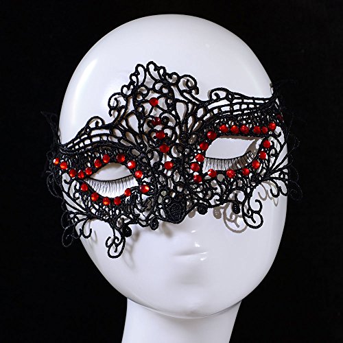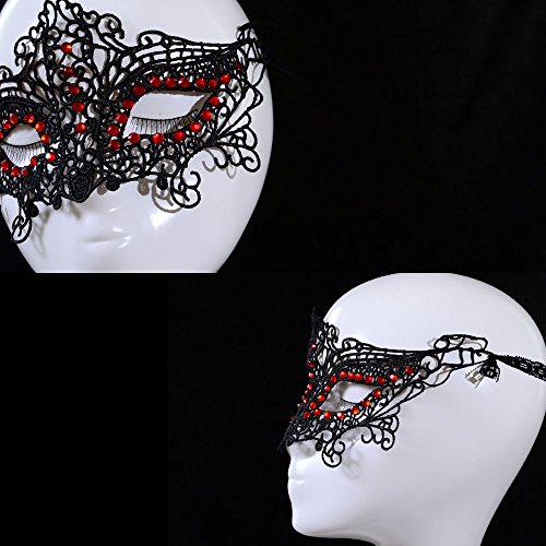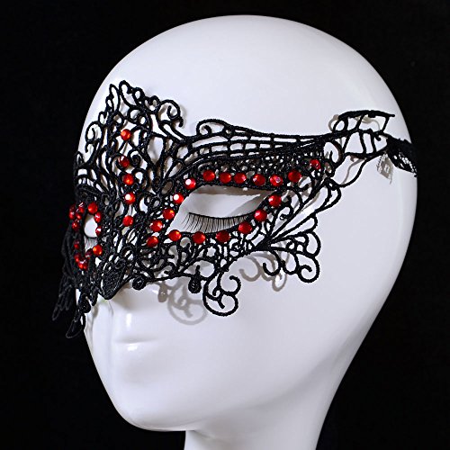 -. Title : Yazilind Red Crystal Design Masquerade Party Fancy Dress Black Lace Mask