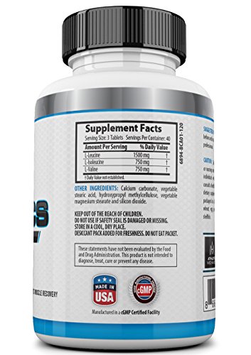 1500mg Leucine, 750mg L-Isoleucine, and 750mg L-Valine. Made in the USA in a cGMP certified and FDA registered & inspected facility.