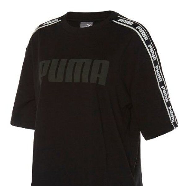 푸마 여성용 FD TAPE 반팔티푸마 로고 테이프가 소매에 덧대어진 루즈핏 여성용 반팔 티셔츠.푸마 로고 티셔츠 프린트 테이프가 어깨선을 따라 둘러져 잇고, 가슴에 위치한 PUMA 로고는 소프트하게 프린트되어 여성미와 레트로한 감성을 동시에 표현하는 제품. 앞면은 허리단에 넣을 수 있을 정도의 짧은 길이인 반면, 뒷면 길이는 약간 길어서 다양한 스타일링이 가능한 것이 장점.