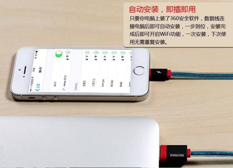 - Original REMAX 2.1A WiFi Share Flat Charging Data Cable is suitable for various Lightning usb 2.0 interface of mobile phone.