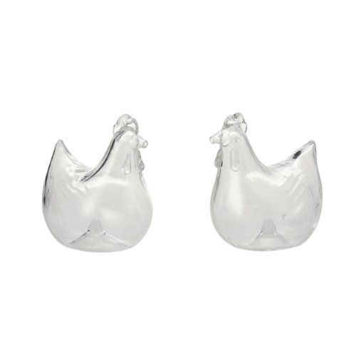 Chickens Mouth Blown Glass Salt and Pepper Shakers Set