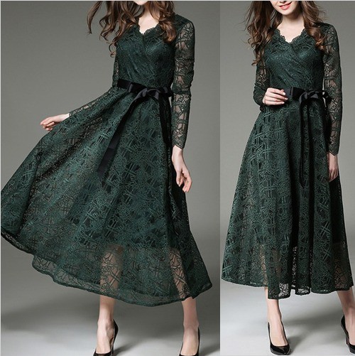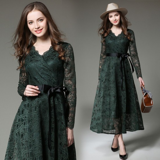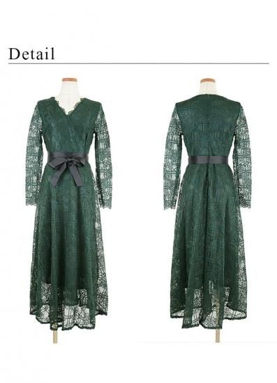 ワンピース ロング ドレス レディース アースカラー レース Aライン シースルー リボンベルト エレガント 上品 パーティー お呼ばれ drgz0629