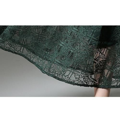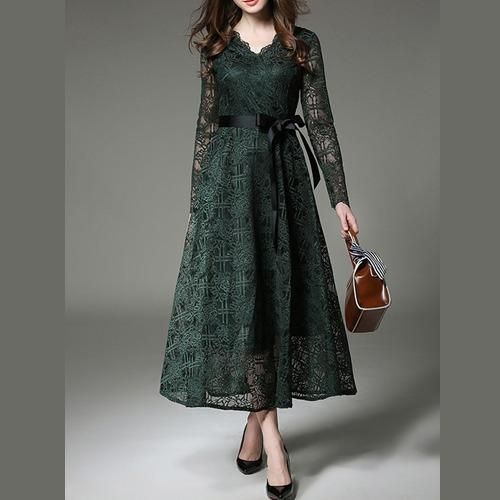 アースカラーの、レースロングワンピース。
