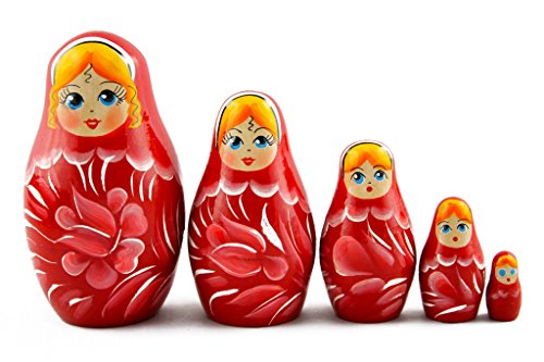 -. Title : Matryoshka Matrioska Babuska Russian Nesting Wooden Doll Beauty Red Dress Matreshka Babooshka 5 Pc Stacking Hand Painting Beautiful Nested Matriosjka Matrioska Matreshka Matrjoska Matroeska