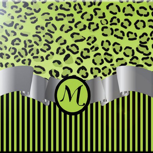 Rikki Knight RK-8intilec-2357 8" X 8" Letter "M" Lime Green Leopard Print Stripes Monogram Design Ceramic Art Tile