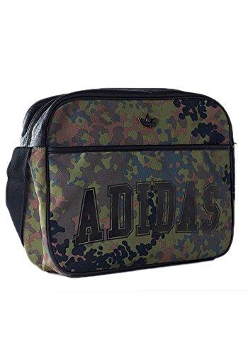 The iconic adidas Airliner bag gets an on-trend look with a modern camouflage graphic print. This boxy woven bag features a large main compartment with inside pockets, plus an adidas graphic on the front slip-in pocket. Zip main compartment; Front slip-in pocket; Zip pocket and slip-in pocket inside Adjustable shoulder strap Allover camouflage print with matte top Metal trim; Large adidas print on front Dimensions: 4" x 15" x 11" 100% polyester plain weaveFeature