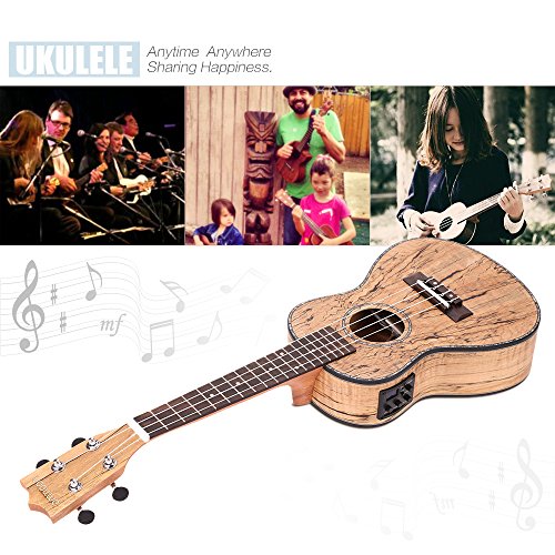 Studio : ammoon Publisher : ammoon Product Description Features: 24" size deadwood(rare material) ukulele. With equalizer to adjust batt, tuner, volume, bass, middle and treble. Can boost the sound and connect to computer / loudspeaker. A 1/4" 6.35mm port for connector and a battery case on the bottom. Fretboard is made of rosewood. Cowry shell sound hole and brims. 4 closed tuners and 4 nylon strings produce really nice sound. High quality OX bone nut and saddle.