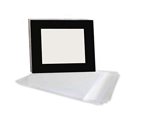 Golden State Art, Pack of 10 Black 16x20 Slip-in Pre-adhesive Photo Mat for 11x14 picture with backing board pre-assembled, Includes 10 clear bags