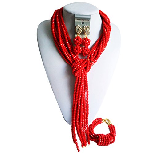 -. Title : laanc Manual Lady Necklace Bracelet Earrings Red Nigerian Wedding African Beads Jewelry Set