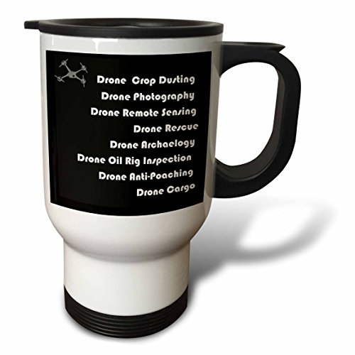 3dRose tm_179962_1 Black and White Drone with Different Types of Drones Travel Mug, 14-Ounce, Stainless Steel