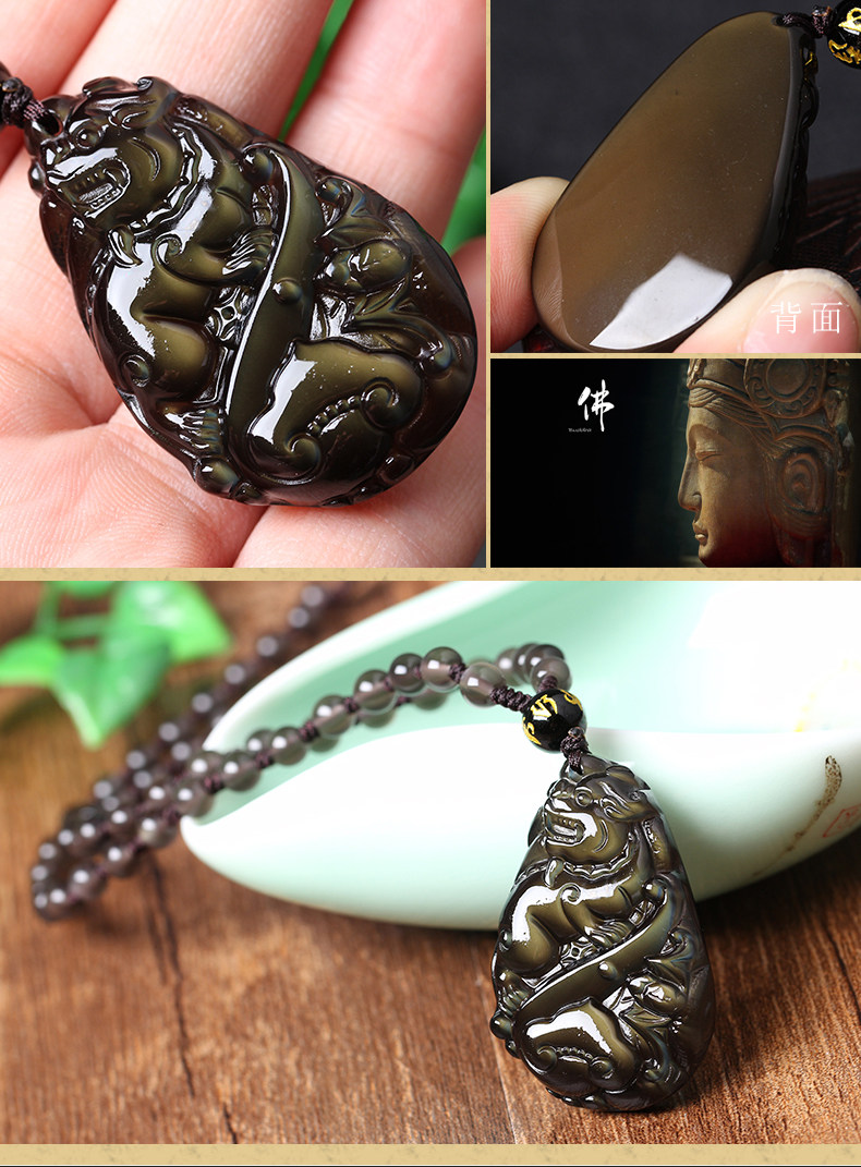 天然冰种彩虹眼黑曜石金权镇宝禄马交驰吊坠