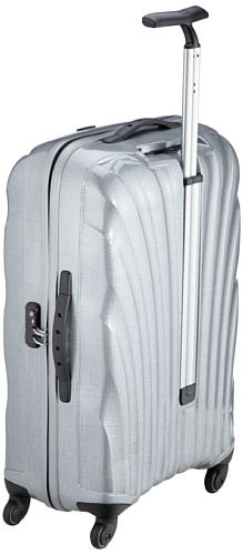 -. Feature : Samsonite exclusive Curv material / Fixed TSA approved combination lock offers extra protection / Four multidirectional spinner wheels allows rolling with ease / ID Tag / Zipped divider pad
