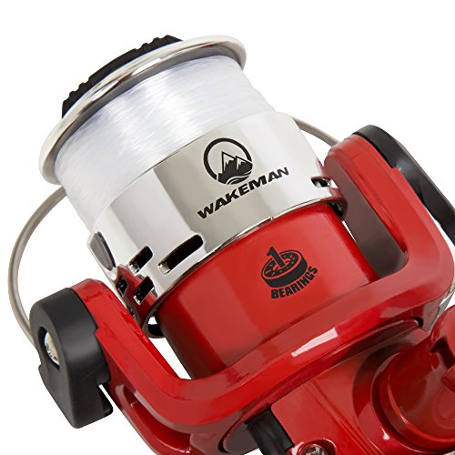 Get your kids ready to fish with the spawn Series spinning style fishing combo from Wakeman! perfect for ponds and lakes, this set has everything your more experienced child needs to catch bass, sunfish, trout and more. It's equipped with a small tackle set which includes a practice casting weight to build some confidence casting in the yard before you take them on the water.&Nbsp; the textured handle ensures a secure grip. The spinning style reel has forward and reverse switch on the bottom and adjustable drag on the front of the spool.Feature