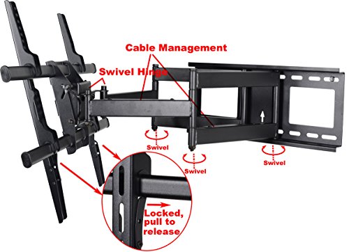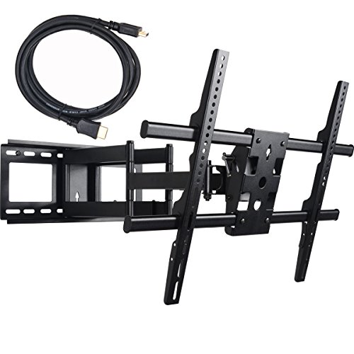 -. Feature : Fits most 37"-70" flat panel screens and display with VESA from 200x100 up to 684x400mm / Max loading capacity 165lbs; Offers up to 160 degrees of swivel (depending on screen model) / Adjustable forward and backward tilt; The wide wall plate supports up to 18" studs.(Fit 16 inch apart wood studs) / Post-installation level adjustment allows the TV to perfectly level / Arm extends 25" from the wall; Cable management on arm; bonus 10ft HDMI cable