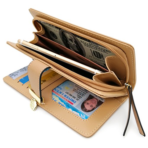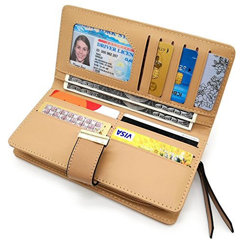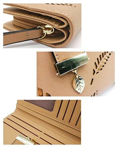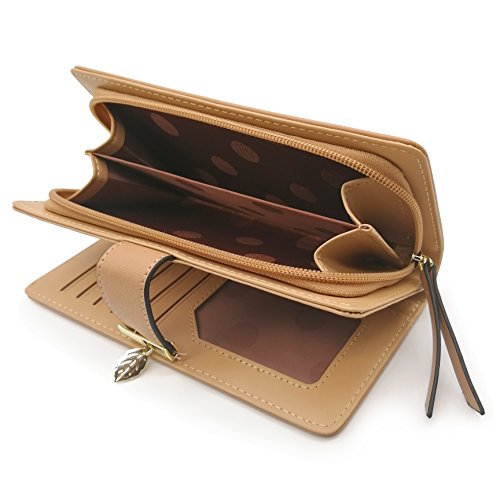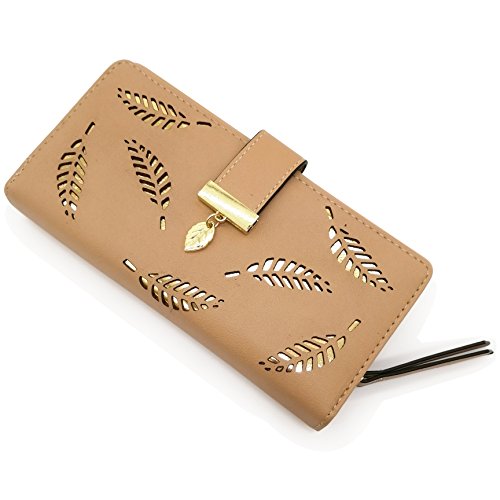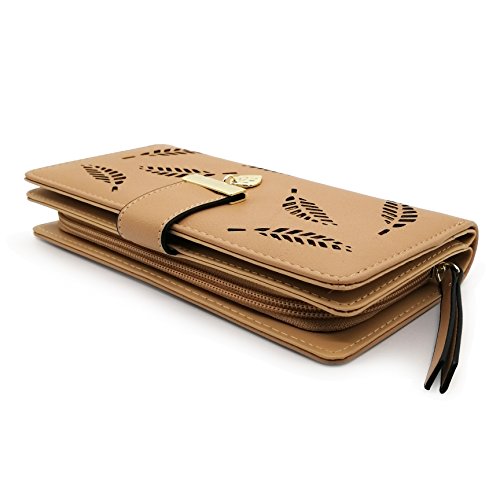 Vodiu Women's Long Leaf Wallet Leather Card Coin Holder Bifold Zipper Clutch Purse