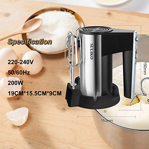【Powerful 200W Motor 】Unlike the ordinary hand mixer, Suliko Hand mixer built in copper core motor with a cooling system work more efficiently and persistently.