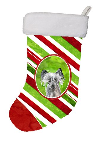 Caroline's Treasures Chinese Crested Candy Cane Christmas Stocking, 11 x 18", Mulitcolor