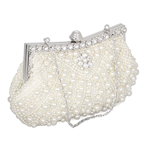 -. Brand : b.m.c -. Department : womens -. Feature : TURN HEADS with these ELEGANT cascading pearl bead cocktail purses / COMPACT, YET SPACIOUS this bag has the following dimensions 8.8 in (L) X 1.5 in (W) X 5.3 in (H) / FLAWLESS INTERIOR - main compartment has soft satin lining with 1 open side pocket / VERSATILE DESIGN - removable shoulder chain has a 22 in. drop. Removable handle chain drops 7 in. / OTHER DETAILS - Closure: Top piece latches over peg to fasten bag. Max Opening: 3.2 inches. -. Label : Bundle Monster -. Manufacturer : Bundle Monster -. NumberOfItems : 1 -. ProductGroup : Shoes -. ProductTypeName : HANDBAG -. Publisher : Bundle Monster -. Studio : Bundle Monster -. Title : BMC Womens Faux Pearl Cascading Bead Rhinestone Evening Clutch Fashion Purse