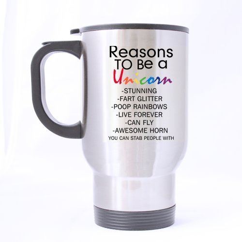 -. Title : Funny Quotes Reasons to Be A Unicorn (Sliver) Mug Stainless Steel Travel Mugs - 14oz sizes