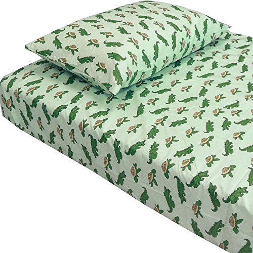 - Fits twin and extra-long twin beds. Alligator sheets design and Turtle Sheets design