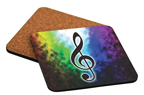 Rikki Knight "Music Notes on Rainbow Blue Smokey Background Design" Square Beer Coasters