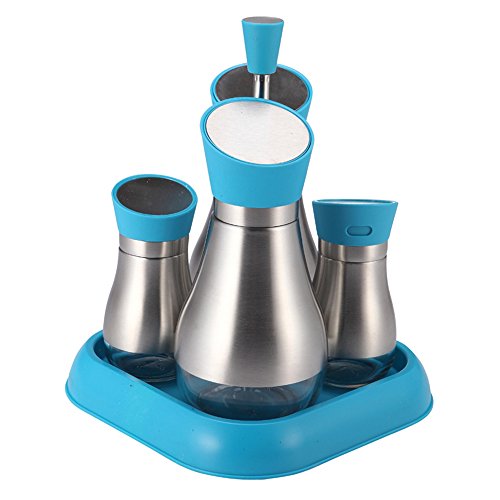 -. Title : L'HOPAN Oil and Vinegar Bottle Cruet Set Salt and Pepper Shaker with Stand - 5 Piece Cruet Set with 180 Degree Turning to Open Pourers Kitchen Combo Set(Blue)