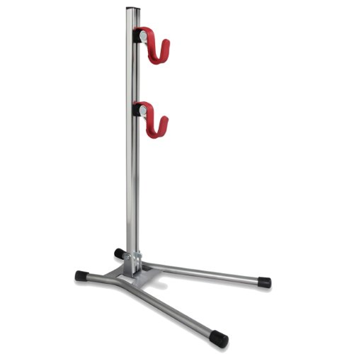 Studio : JB Importers, Inc. Publisher : JB Importers, Inc. Binding : Sports Product Description Clamps the rear hub from both sides to stand the bike alone.Made of lightweight but durable steel tubing.Foldable to be super flat for compact storage when not in use.Opens in two directions to provide two different heights (225mm / 365mm from ground) for better bike angle.Taller height is for larger wheels such as 26" or 700c.Lower height is for smaller wheel bikes such as BMX or folding bikes.Opened: H 380 x W 305 x D 285 mm, Folded: L 420 x W 305 x D 40 mm.This product is manufactured in Japan. 0