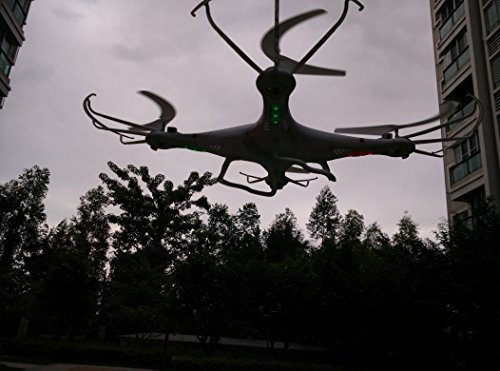 Night lions Tech(TM) 37.5 Inch Monster Drone N7C 4 Channel 6 Axis GYRO Big Quadcopter with HD Camera For Outdoor Flying, Upgraded version Description: Item name: Monster Drone N7C Frequency: 2.4G Gyro: 6 axis Product size: Diameter 37.5 Inch(including the Protective cover), height: 6.7 Inch Product battery: 7.4V 1800MAH 20C (included) Remote battery: 4 x AA battery(Not included) Charging time: 120mins Flying time: approx 8 mins R/C distance: approx 80m Flying distance: approx 80m Color: White Features: With Headless Mode. You can take pictures or videos with the 2 million pixels HD camera. 3 speed swithch: low speed,normal speed,fast speed. (default speed is low speed) 360 degree Eversion and throwing flight function. 4 Channel which can do ascend, descend, forward, backward, left sideward fly, right sideward fly. It has 6-axis gyro which can have more stable flying and be easy to control Strong wind resistance,good for outdoor paly. Note: As this quadcopter is very big, it is for outdoor fly only. Package Included: 1 x RC Quadcopter with battery and camera 1 x Transmitter 1 x Charger 1 x Manual 4 x Spare rotors 4 x Protective coverFeature
