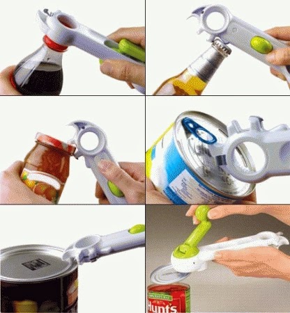 Kini membuka kaleng makanan atau minuman tidak lagi susah karena ada 6 Way Opene, Pembuka Kaleng Multi Fungsir yang mudah digunakan tanpa harus capek capek mengeluarkan tenaga lagi.